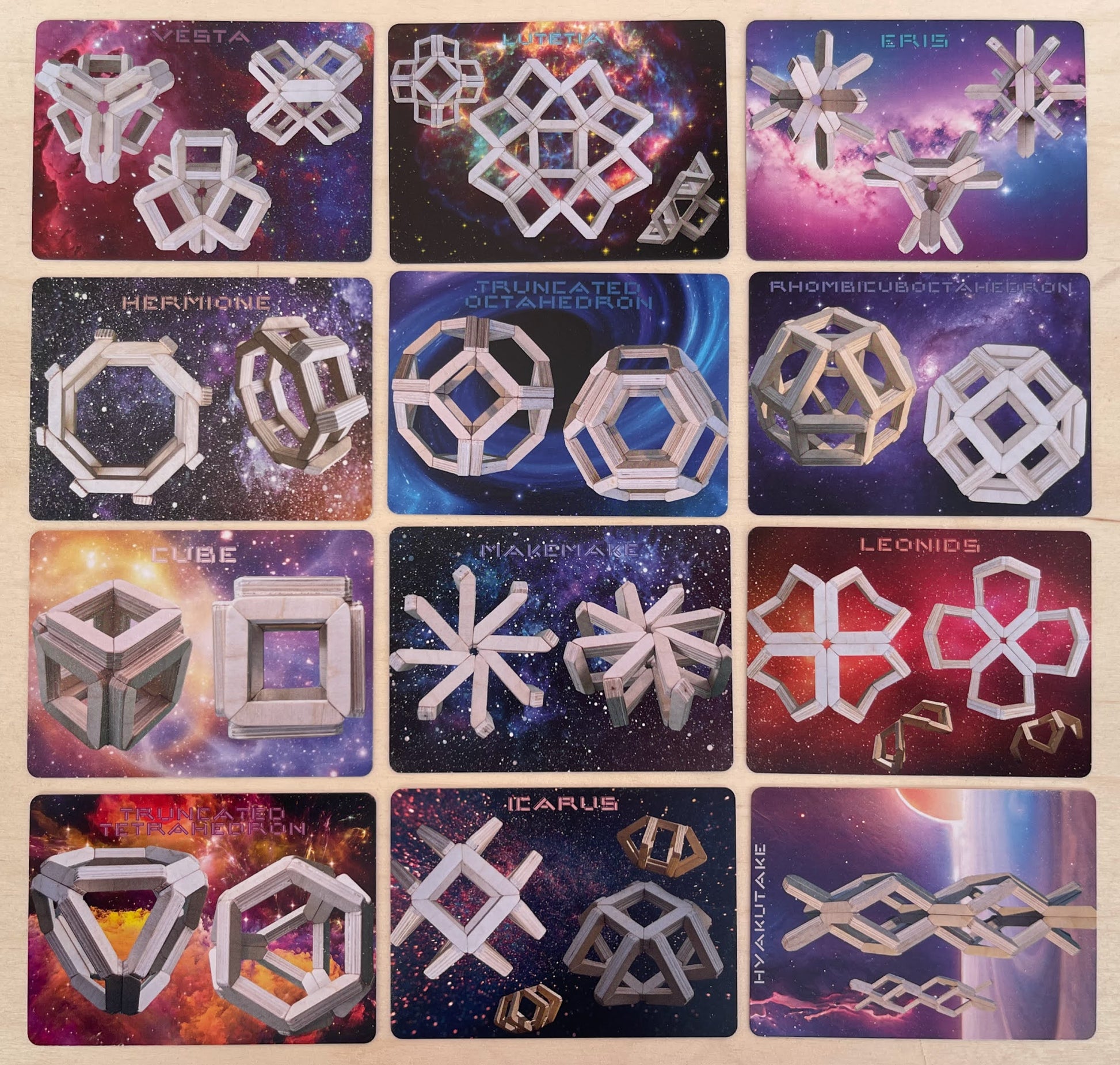 Starbuilder blocks' out of this world design makes them fun and fascinating for all ages. Whether you are constructing one of the artful, geometric structures on the included puzzle cards, creating your own masterpieces, or just enjoying the magic of magnetism and the feeling and sound of real wood clicking together, the patterns and play of Starbuilder blocks is addicting. Made to last forever and to be mesmerizing across generations.